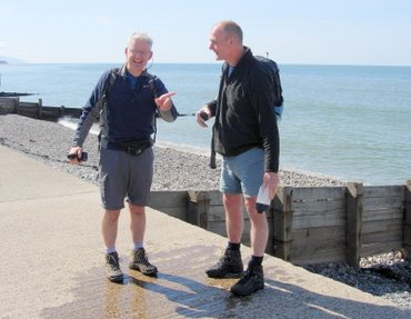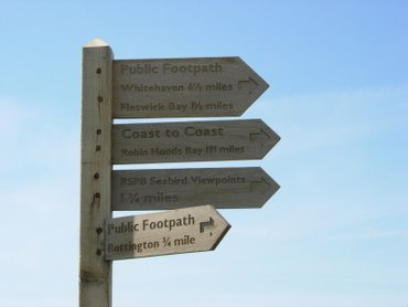 St Bees, my boots in the sea, a view of St Bees and a sign showing