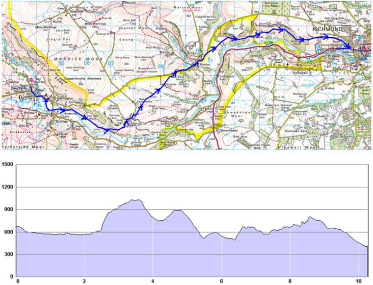 I awoke to pouring rain this morning and like my fellow walkers decided to have a leisurely breakfast and a delayed start to the walk. By 09:30 it had eased to a light drizzle and I set off just behind Eric & Sherry heading for Marrick and then Marske. Eric had taken a wrong turn somewhere in Marrick but they caught me up again before the end of the day. The rain stopped after about an hour and it was so warm that I had to stop to take off my coat on the climb to Applegarth Woods.