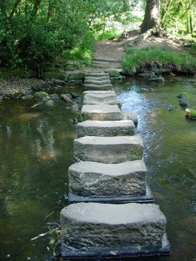 A third short day in a row. The traditional C2C route does the last 37 miles from Clay Bank Top to Robin Hood’s Bay in 2 days but I decided that this was too much for me, hence the 3 shorter days followed by 12 miles on the final day. Leaving Glaisdale I had a very pleasant walk on an old paved packhorse route through Arnecliff Wood before a short section of road brought me to the double set of stepping stones at Egton Bridge.